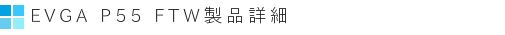 EVGA P55 FTWは、Intel P55 Express チップセットを搭載したATX規格、LGA1156対応のマザーボードです。Intel Core i5/i7プロセッサ、DDR3デュアルチャンネル、PCIExpress 2.0グラフィックインターフェースに対応します。P55の特徴は統合されたワンチップ構成にあります。低発熱で高速な処理性能を実現します。